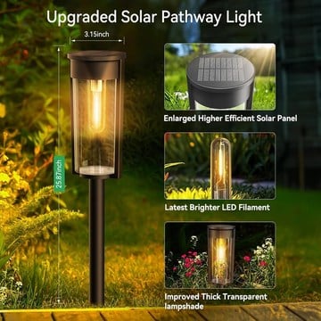 Illuminate your garden with the enchanting glow of solar-powered path lights! Perfect for enhancing any outdoor space, including gardens, yards, pathways, lawns, flower beds, driveways, patios, sidewalk,porches, and walkways, these outdoor solar lights are sure to impress.