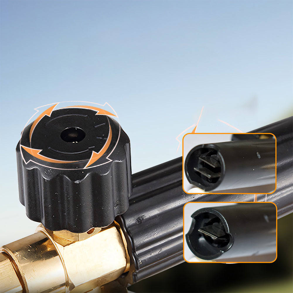 The two-way shuttle valve is designed to easily switch between the foam spray gun and pressure washer tip jobs. You can change the necessary tool by simply moving the valve up and down without constant disassembly or replacement, reducing the hassle of changing accessories for different cleaning tasks, making it a universal and practical tool for any cleaning procedure.