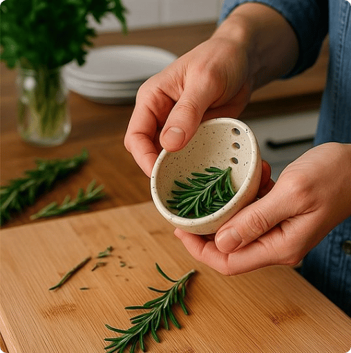 I made this Pottery Herb Stripper because I was tired of cold, clunky gadgets that felt like they belonged in a factory, not a home.So I got back to my roots — working with natural porcelain clay, shaping each piece by hand, right here in my little studio.Every curve, every edge is designed to gently pull herbs from their stems without bruising or breaking flavor — because good cooking deserves good tools.